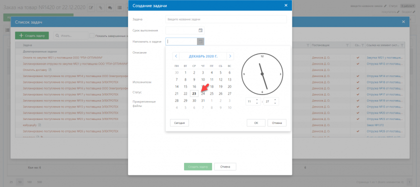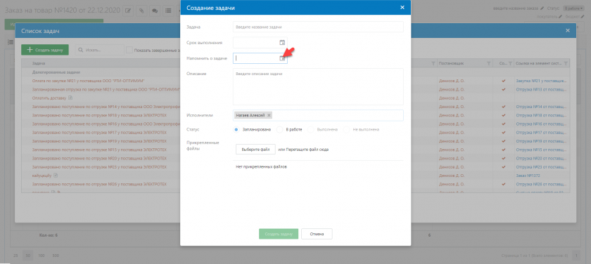 - Заполнить поле "Напомнить о задаче", выбрав дату и время
