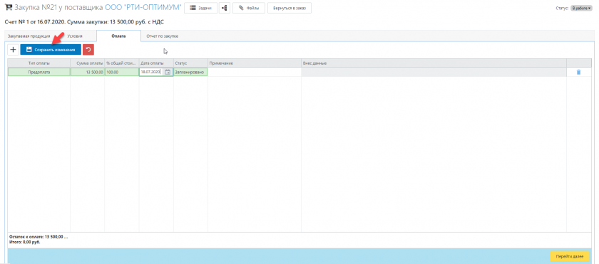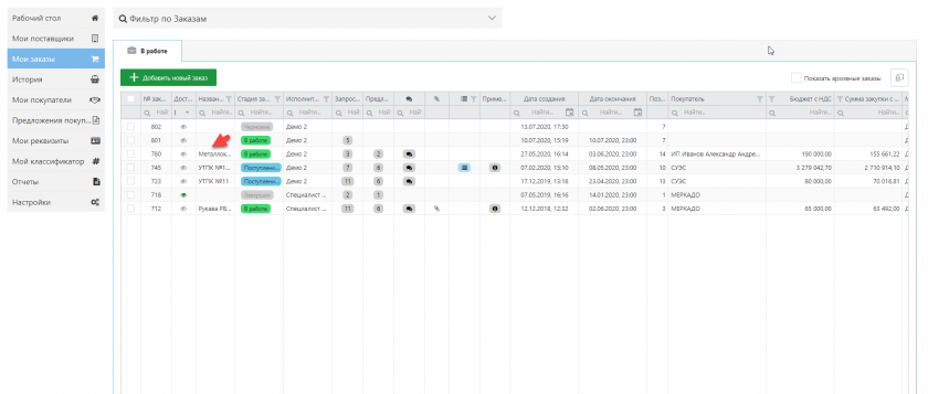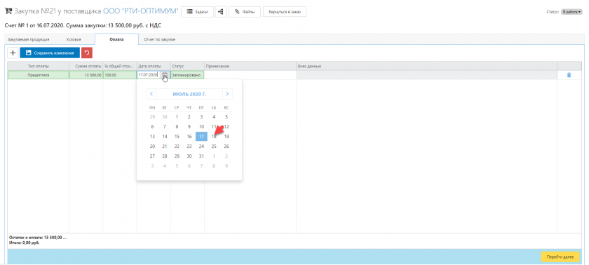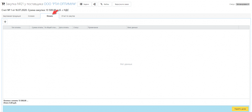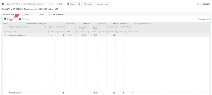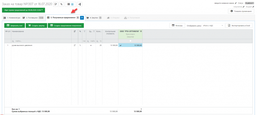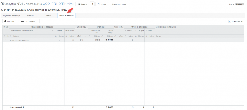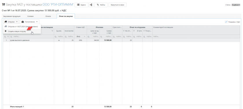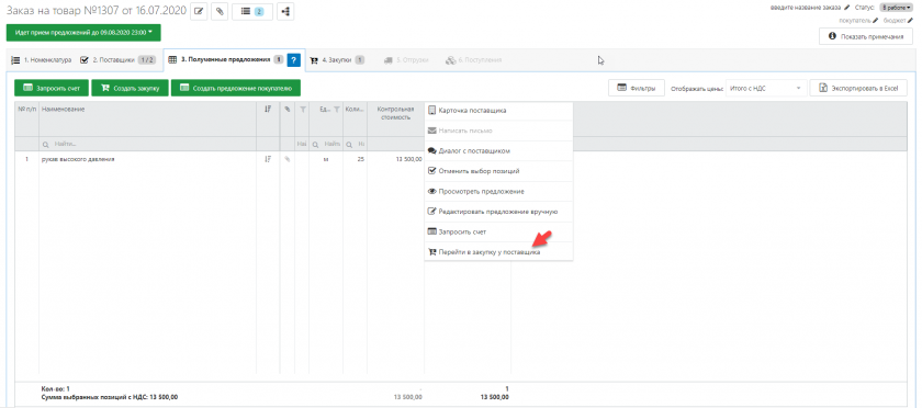 - Нажмите на поставщика и выберите "Перейти в закупку у поставщика"