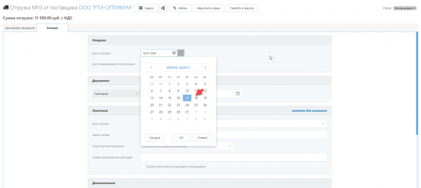 - В условия отгрузки укажите дату отличную от сегодняшнего дня!