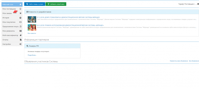 - Для создания задачи, связанной с закупкой, перейдите на вкладку "Закупка у поставщика". Нажмите на меню поставщика