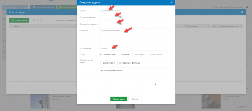 Заполните необходимые вам поля ( название задачи, срок выполнения, описание)