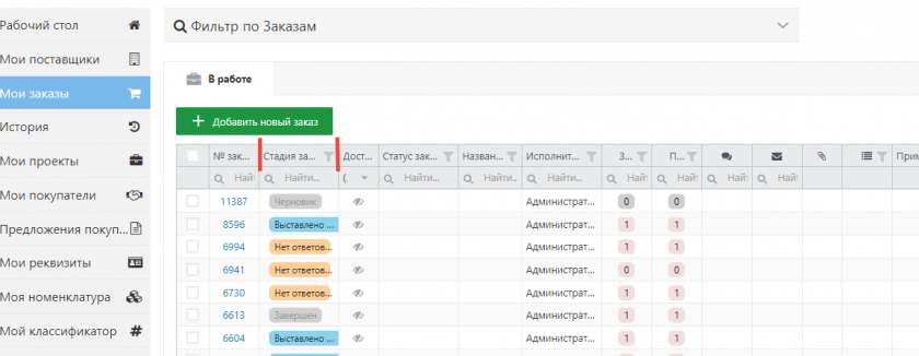 Возможность менять столбцы местами в журнале Мои заказы