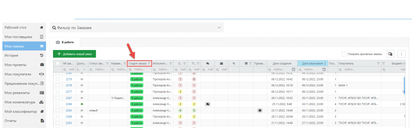 При работе в Системе для вашего удобства у нас реализована возможность менять порядок расположения столбов в таблице в нужной вам последовательности.