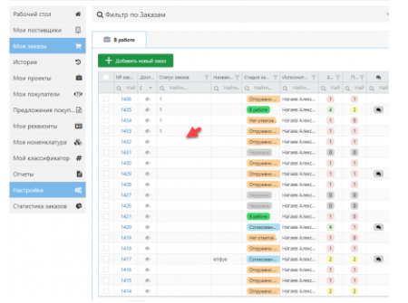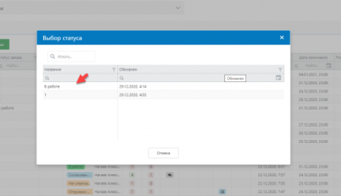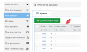 Нажмите на ячейку колонки "Статус заказа" напротив заказа, которому нужно присвоить статус