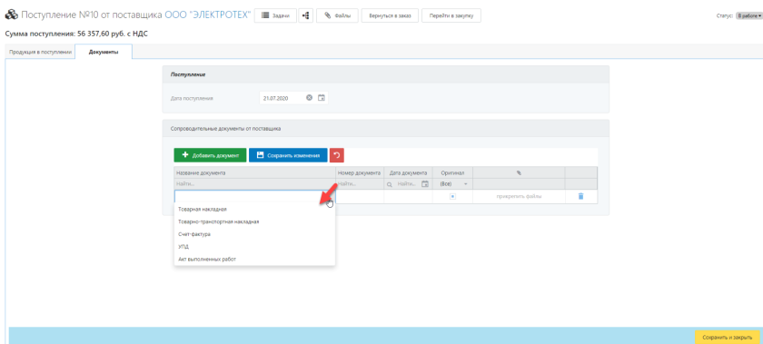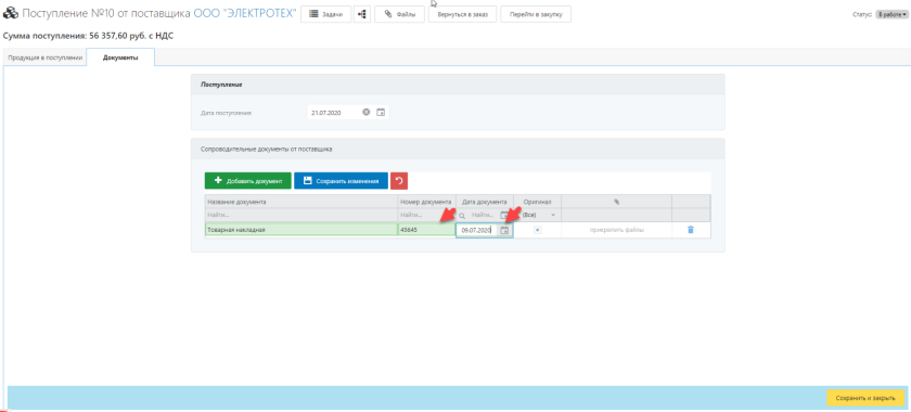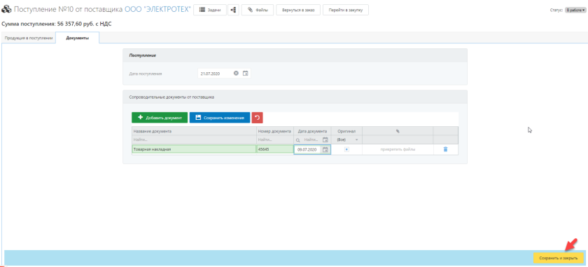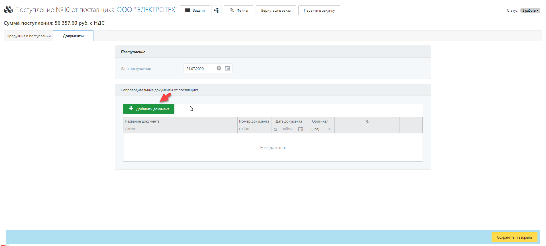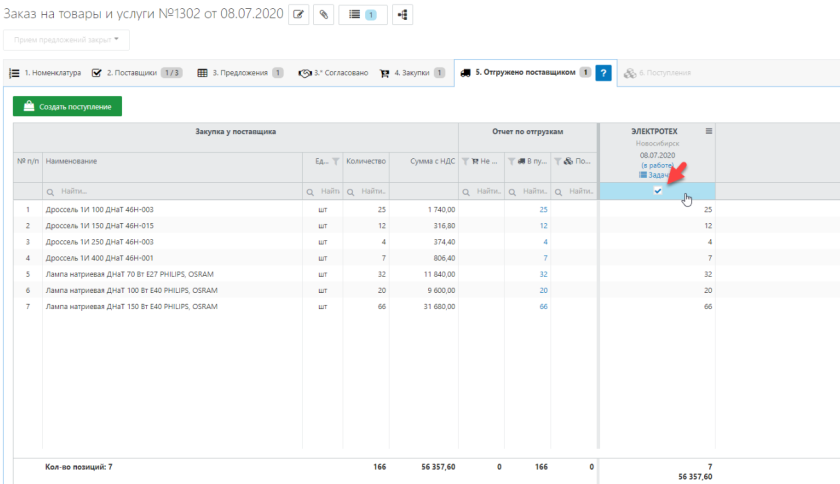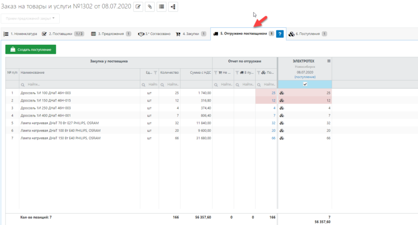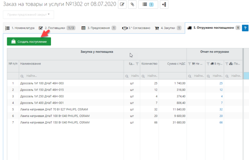 - Перейдите в заказе на вкладку "Отгружено поставщиком"