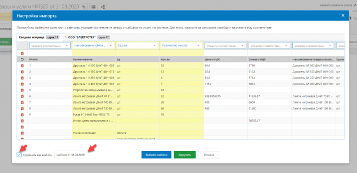 в настройке импорта нажмите галочку "Сохранить как шаблон", также вы можете задать имя шаблона