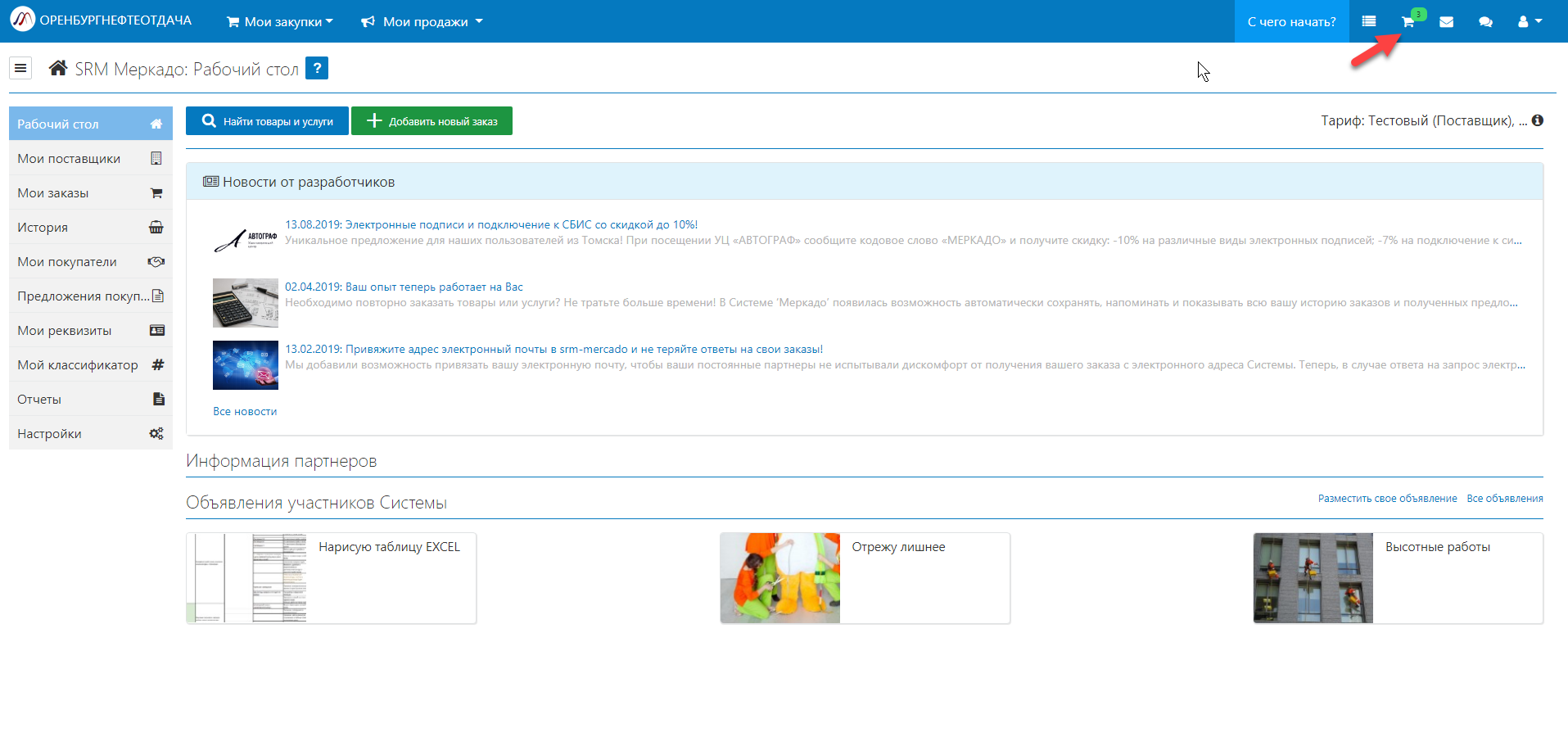 • Для создания заказа нажмите кнопку "Создать заказ"