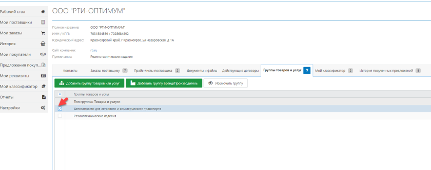 Как добавить группу бренд/производитель в журнале "Мои поставщики"?