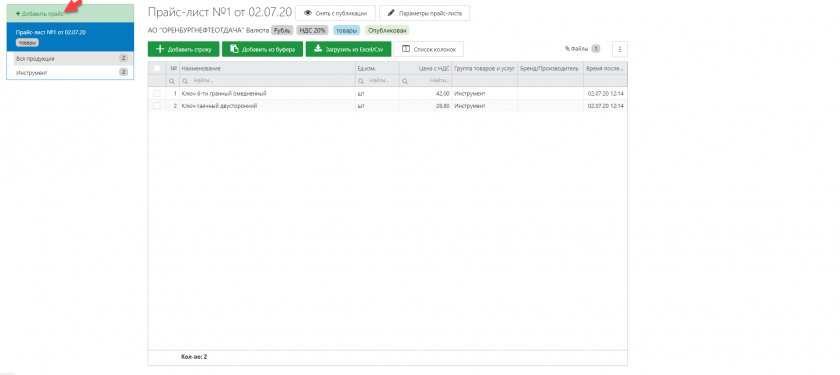 - Либо нажмите "Добавить прайс-лист", если уже был добавлен хотя бы одни прайс