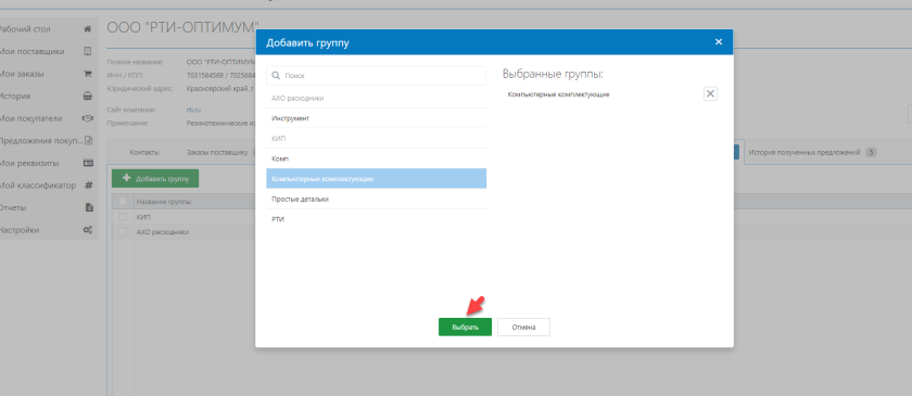Как установить группу "Моего классификатора" для нескольких поставщиков?
