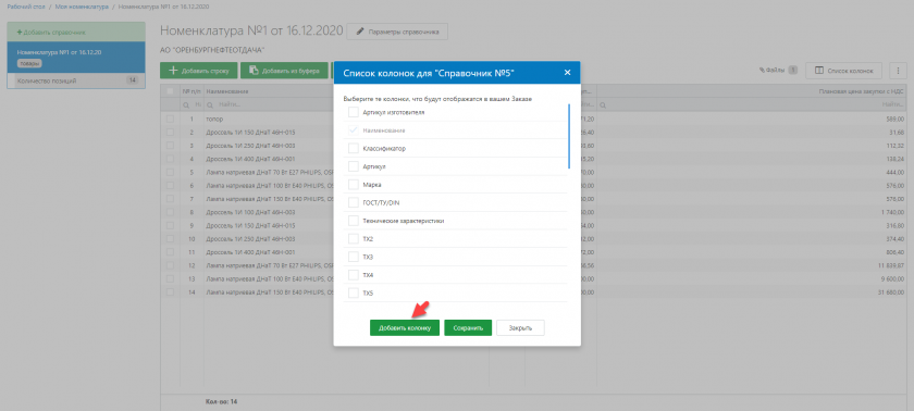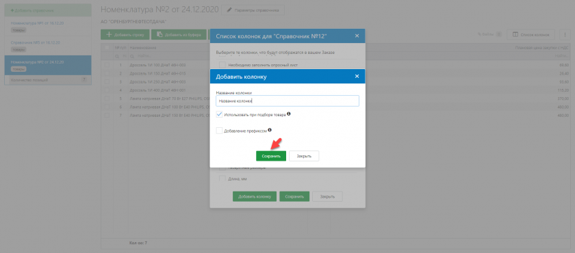 Как добавить новый столбец(колонку) в справочник "Моя номенклатура"?