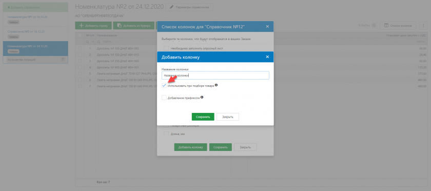 - Для того чтобы использовать название колонки при поиске нужно поставить галочку "Использовать при подборе товара"