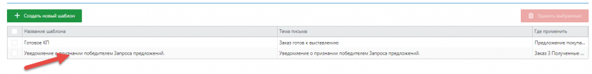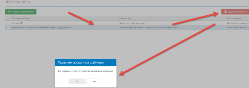 Так же имеется возможность удалить любой шаблон, выбрав его и нажав на кнопку Удалить выбранные. После чего Система уточнит у вас, точно ли вы хотите удалить шаблон. Если вы подтвердите действие, то шаблон будет удален без возможности восстановления.