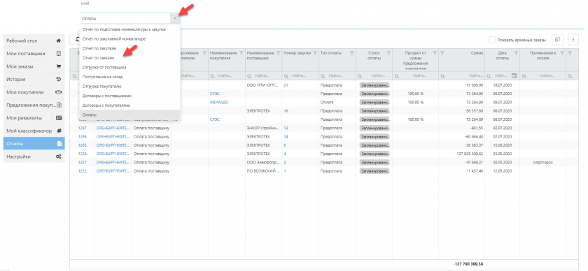 Выберите нужный отчет