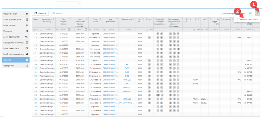 Нажмите на "Экспортировать в Excel"