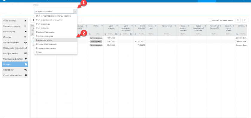 Для просмотра запланированной отгрузки на покупателя откройте отчет "Отгрузка покупателю"