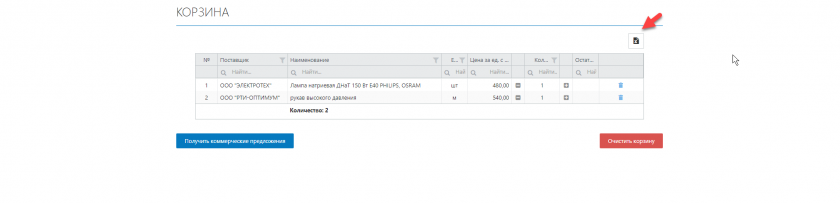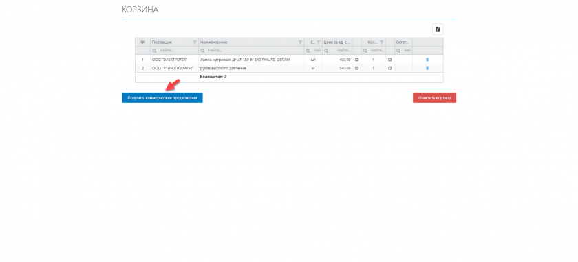 - Для создания заказа нажмите "Получить коммерческие предложения"