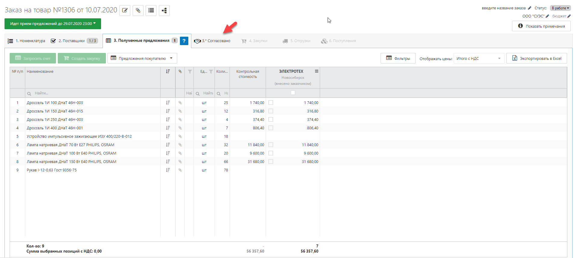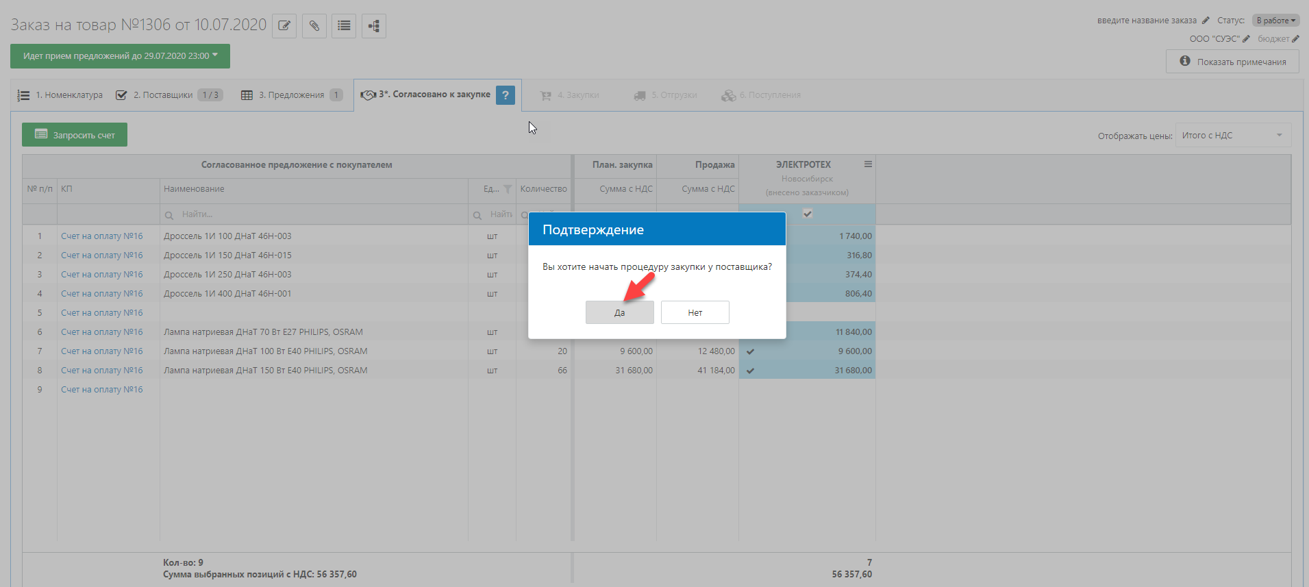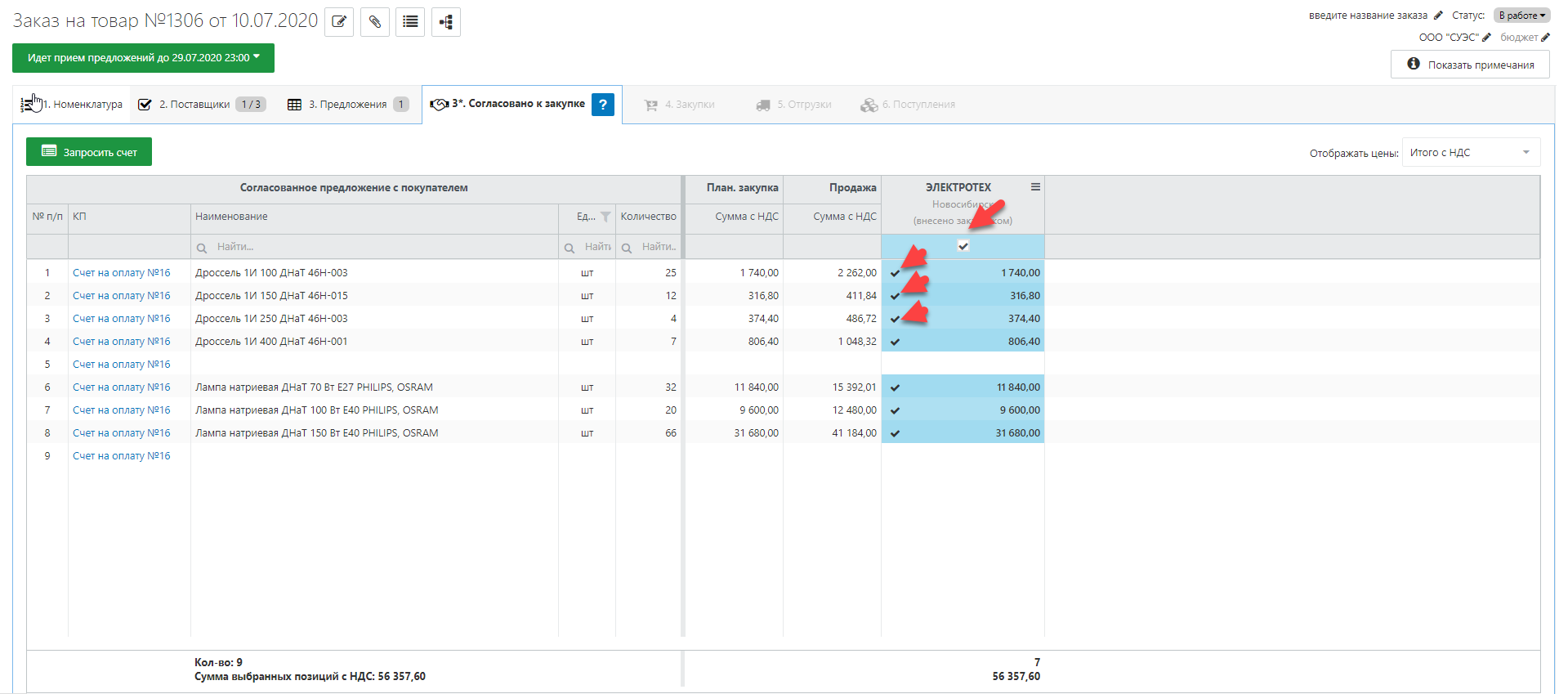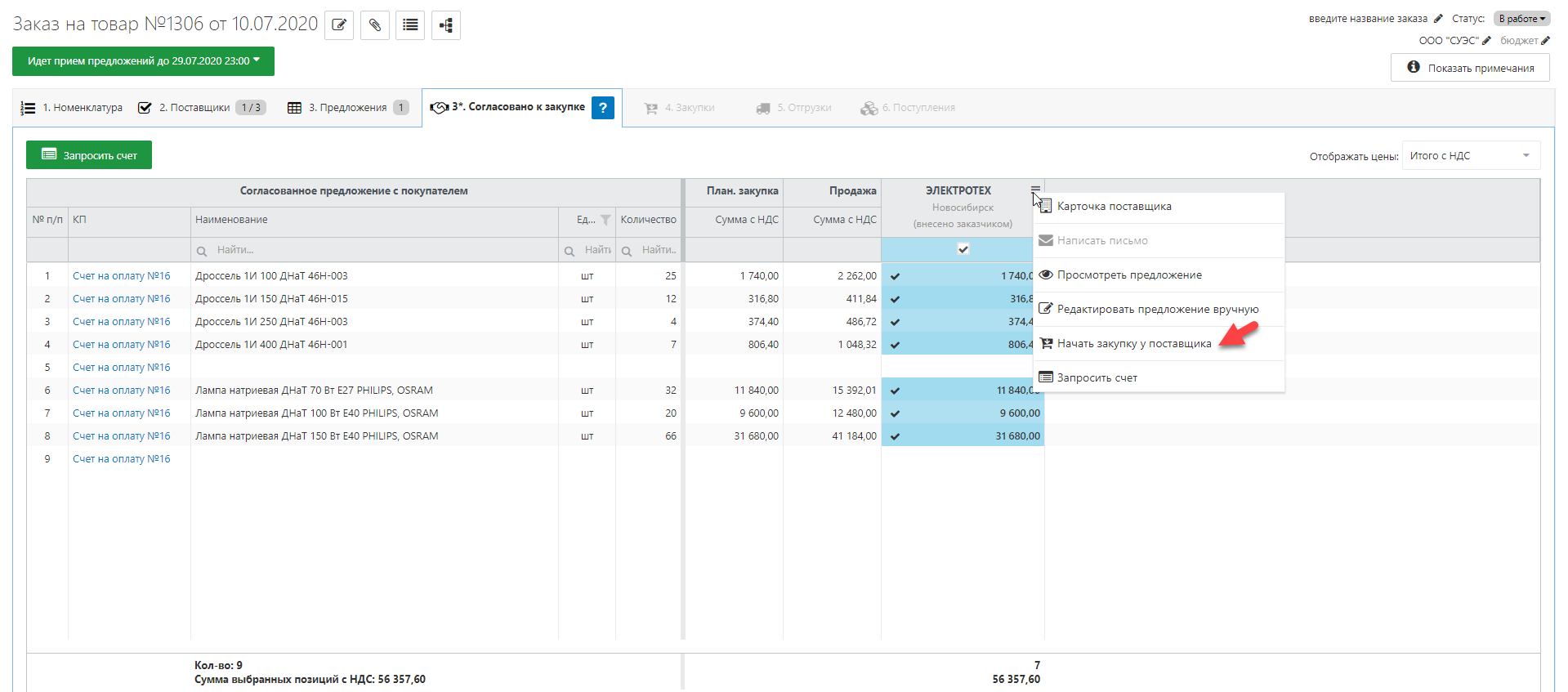 - Для того чтобы создать закупку из предложения покупателю необходимо выставить предложение покупателю