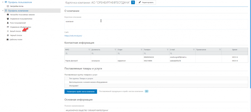 - Здесь хранятся данные о поставщиках из каталога Системы, которых Вы решили выделить в отдельный список и Ваши комментарии к ним. Вы можете добавлять компании из этого списка в ручном режиме, при работе в заказе, выбрав опцию "добавить поставщика". Вы всегда можете удалять или добавлять компании в данный список
