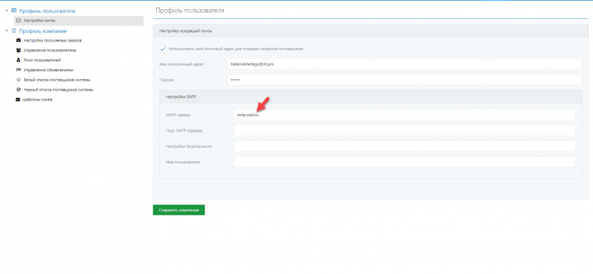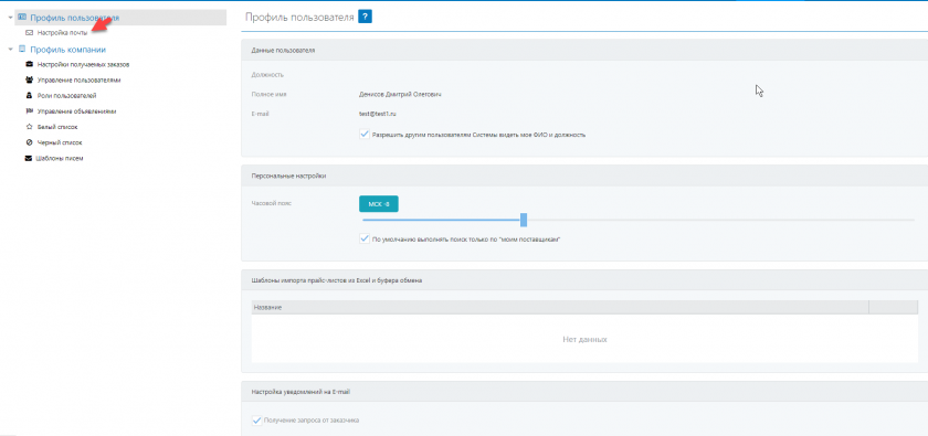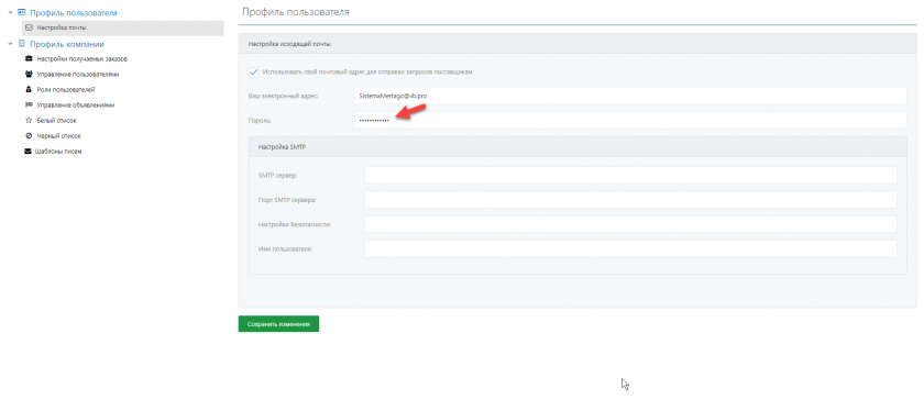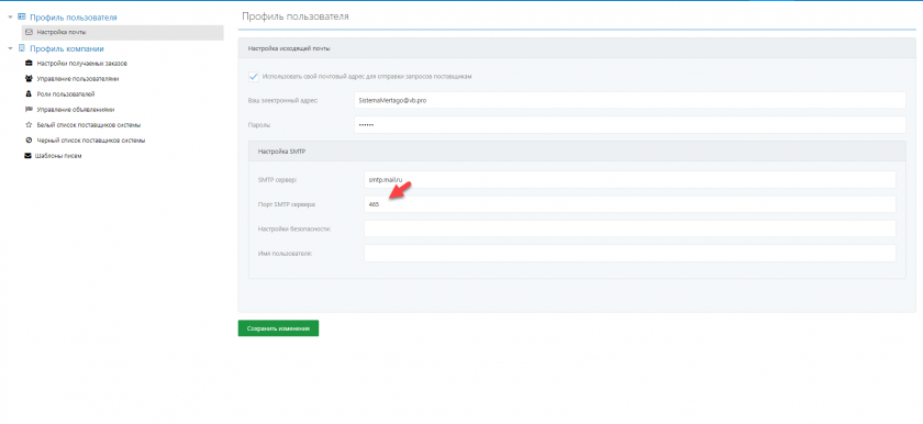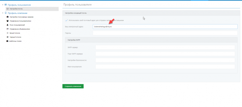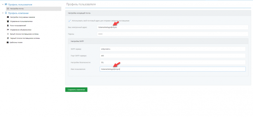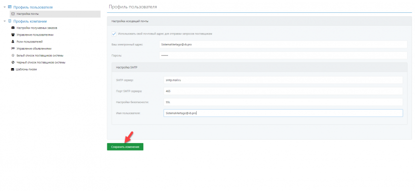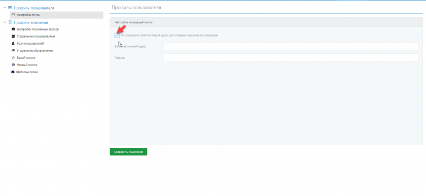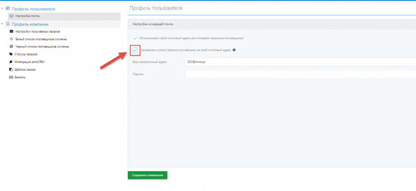 - Поставьте галочку напротив пункта "Использовать свой почтовый адрес для отправки запросов поставщикам"