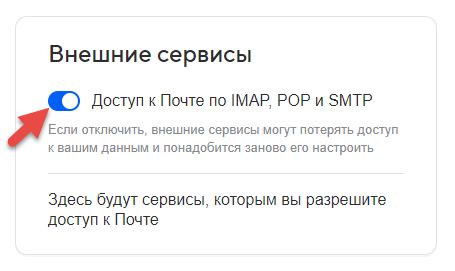 И в открывшемся окне включить Доступ к почте по IMAP, POP, SMTP