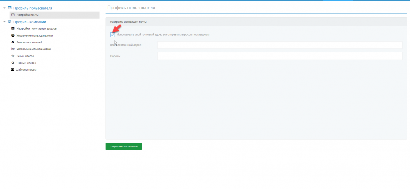 - Поставьте галочку напротив пункта "Использовать свой почтовый адрес для отправки запросов поставщикам"