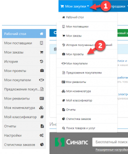Или войдите в журнал "Мои закупки" и выберите "Мои проекты"
