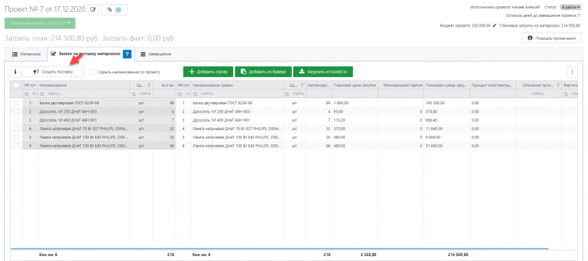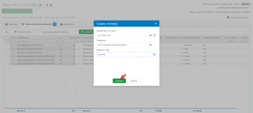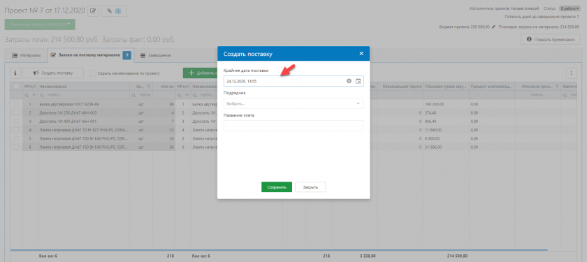 - Укажите крайнюю дату поставки, она должна быть не позднее даты окончания проекта
