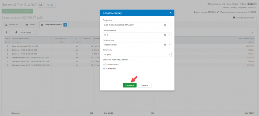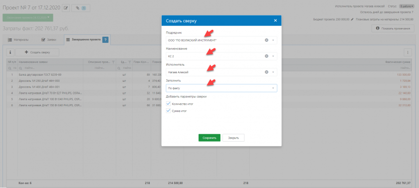 В открывшемся окне выберите : подрядчика, наименование сверки( КС2, КС3), исполнителя, поле сверки по факту или по плану